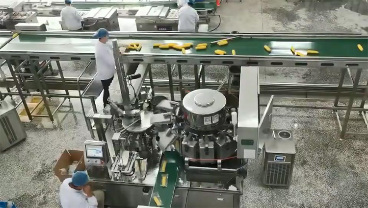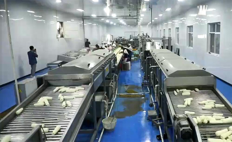 鮮食玉米加工基本流程:扒皮、切頭去尾、高壓清洗、漂湯殺青、清洗冷卻、風(fēng)干、真空包裝、高溫殺菌、風(fēng)干、裝箱等。