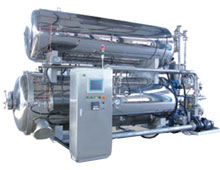 用高溫高壓的蒸汽和熱水作多種食品的高溫快速殺菌處理,食品在連續(xù)緩慢回轉(zhuǎn),使熱量傳遞更迅速均勻,大大縮短整個(gè)殺菌過程的時(shí)間,從而達(dá)到高溫短時(shí)殺菌處理,同時(shí)可避免食品周圍產(chǎn)生過熱的現(xiàn)象.