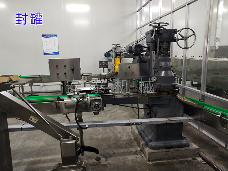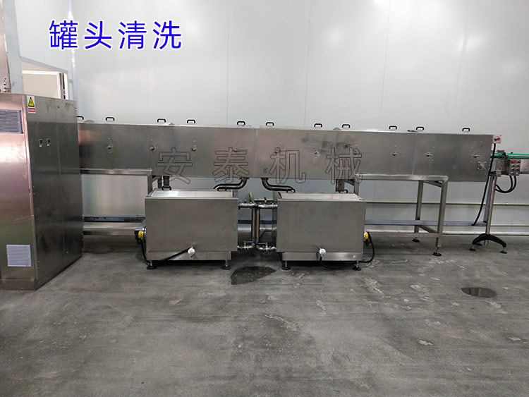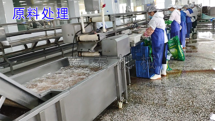 解凍——去頭和內臟——清洗——蒸煮——冷卻——去皮和骨——切塊——裝罐——罐湯——封罐——洗罐——裝籠——殺菌——卸籠——洗罐——吹干——噴碼——拆箱——裝箱——碼垛